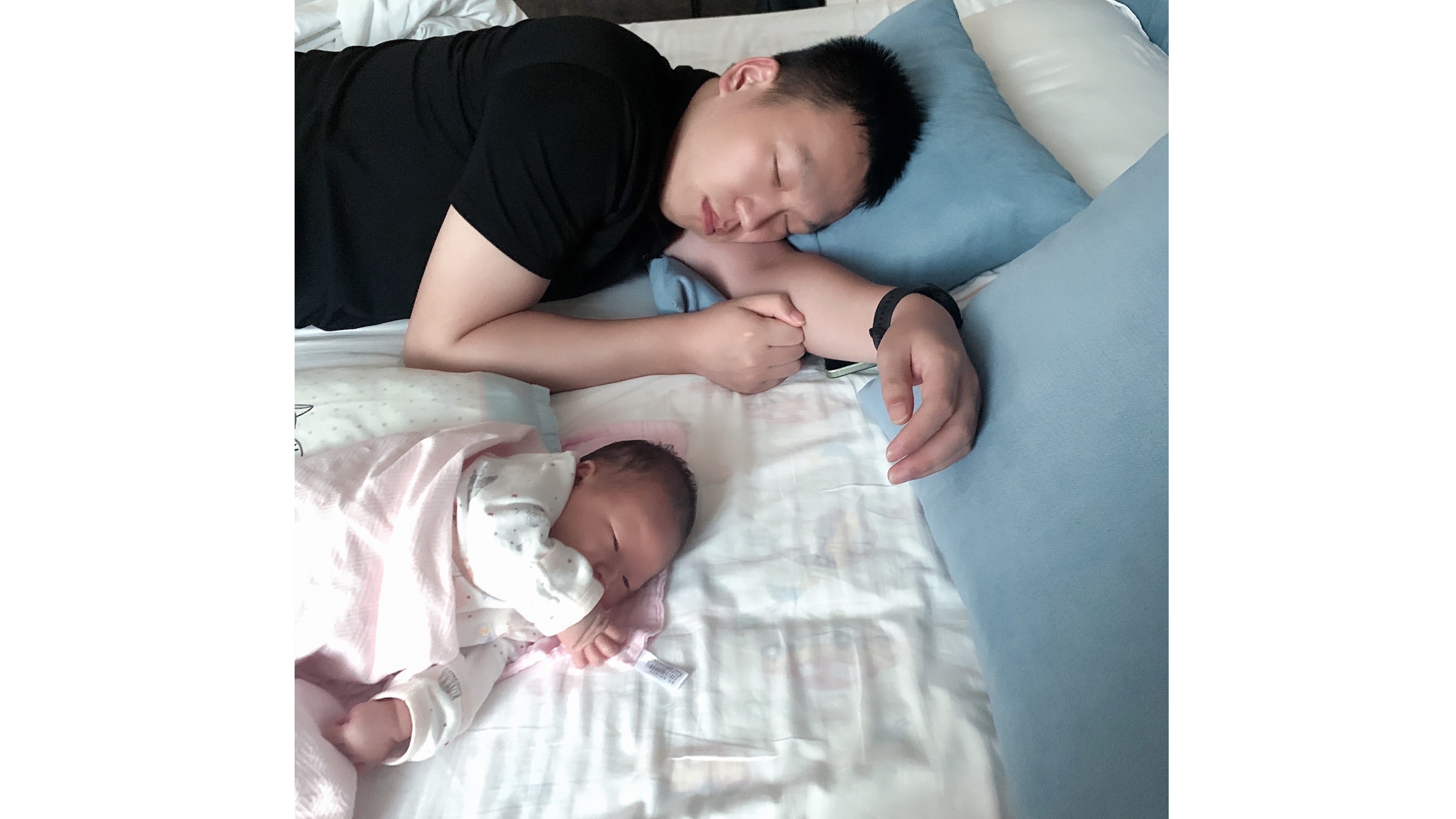 睡姿跟爸爸一模一样。