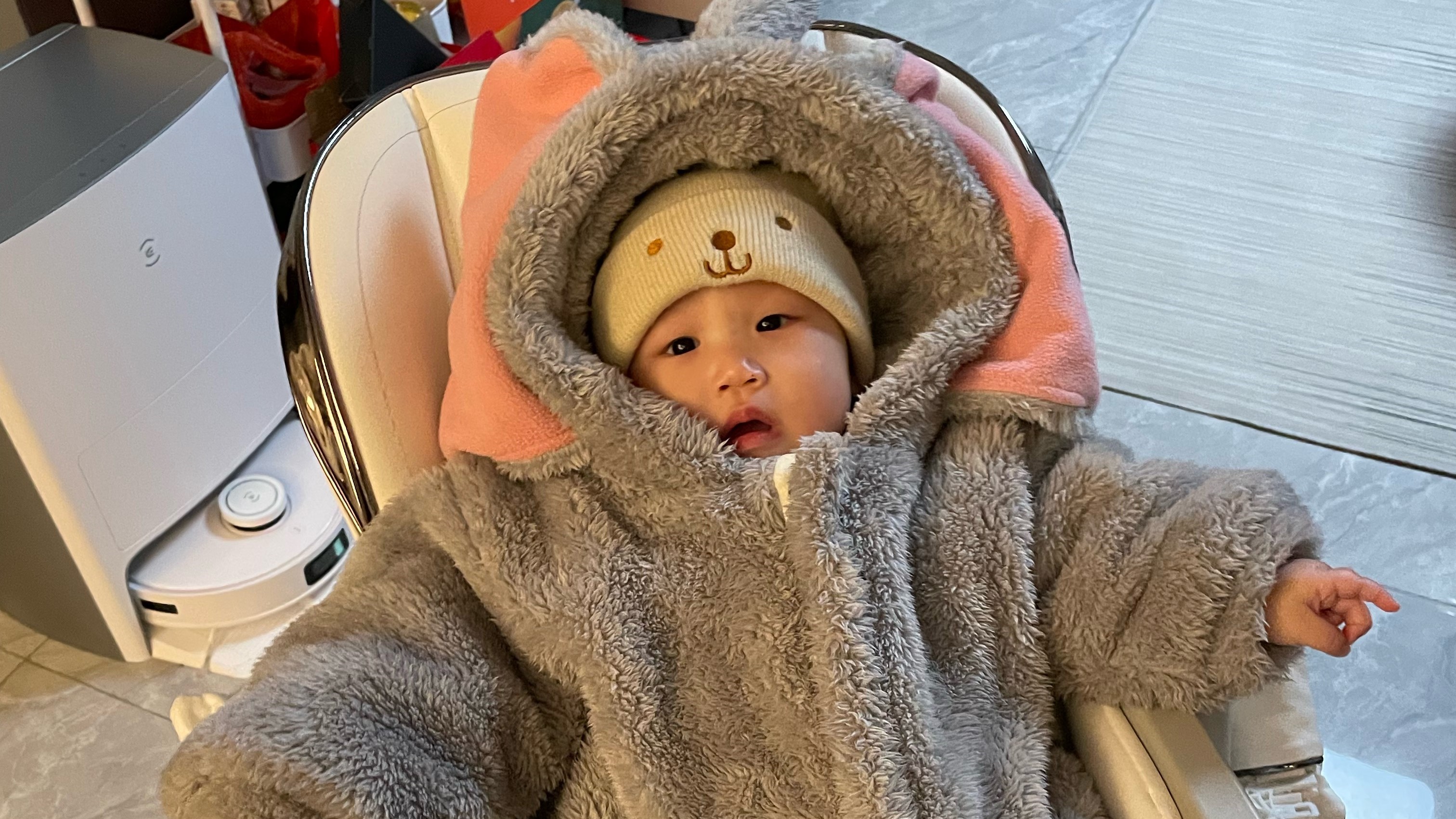 百天了,妈妈和摄影师小姨在家给我拍了百天照。