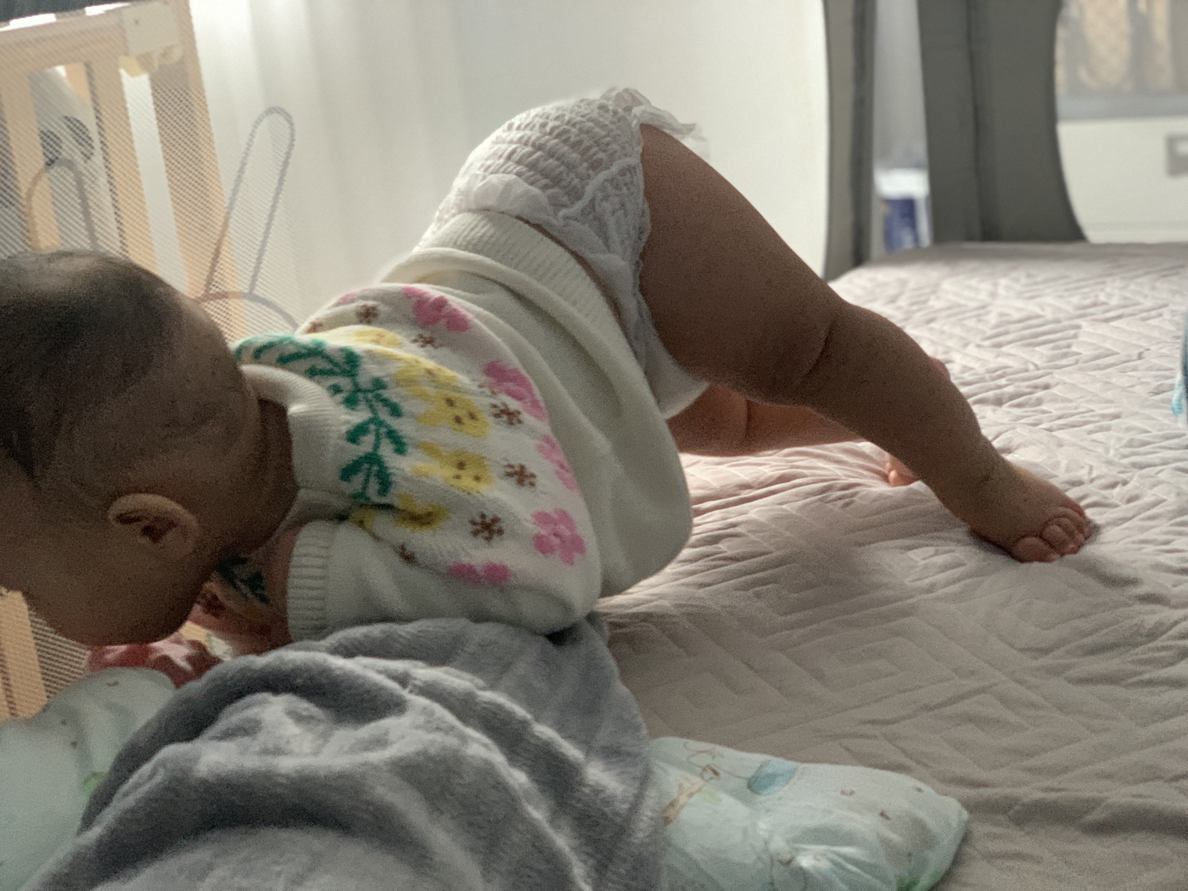 爬着爬着就自己撅屁股了。